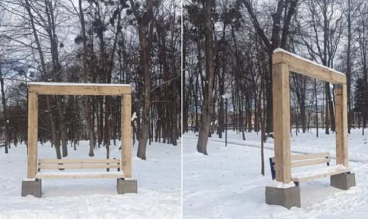 В парку Шевченка в Чернівцях установили дивну лавицю, схожу на шибеницю.