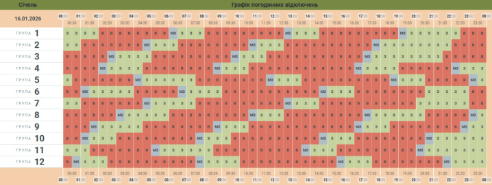 Графік відключень світла на 16 січня для Чернівецької області.