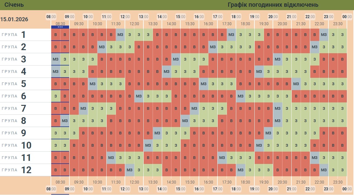 «Чернівціобленерго» оновило графік погодинних відключень електроенергії на четвер 15 січня. Світла сьогодні буде мало, а знеструмлення будуть часті та тривалі.