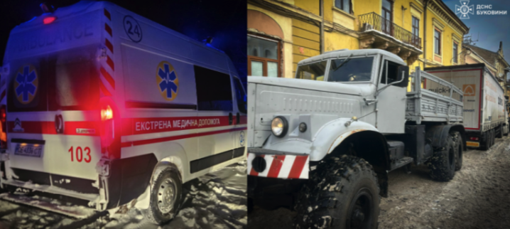 Засніжені дороги: на Буковині рятували швидку та вантажівку.
