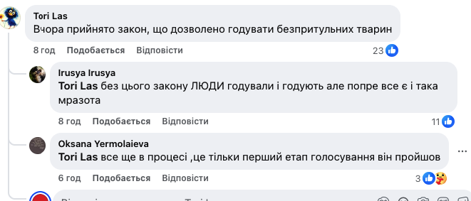 Користувачі соцмереж наголошують, що подібні заборони в умовах низьких температур можуть ставити під загрозу життя тварин і закликають до більш гуманного підходу та діалогу між мешканцями, бізнесом і волонтерами.