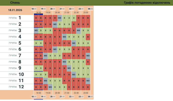 Оновлений графік погодинних відключень до кінця доби для Чернівецької області.