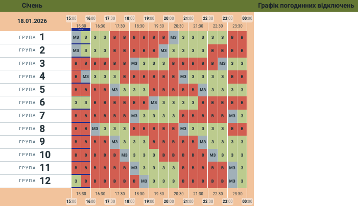 Оновили графік погодинних відключень на неділю, 18 січня для Чернівецької області.