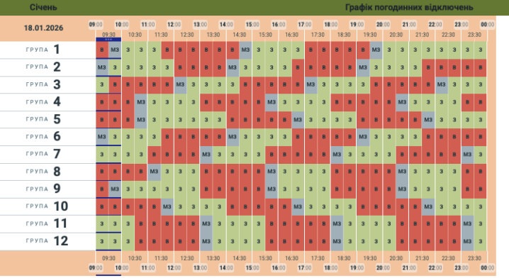 Оновили графік погодинних відключень на неділю, 18 січня для Чернівецької області.