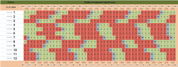 Графік погодинних відключень на середу, 21 січня для Чернівецької області.