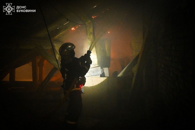 У центрі Чернівців сталася пожежана горищі житлового будинку на вулиці Ольги Кобилянської. Рятувальники, що прибули на виклик загасили займання на площі 10 кв.м. та не допустили подальшого поширення вогню на увесь будинок.