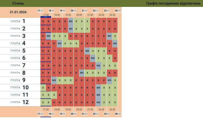 Оновили графік відключень електрики до кінця доби 21 січня для Чернівецької області.