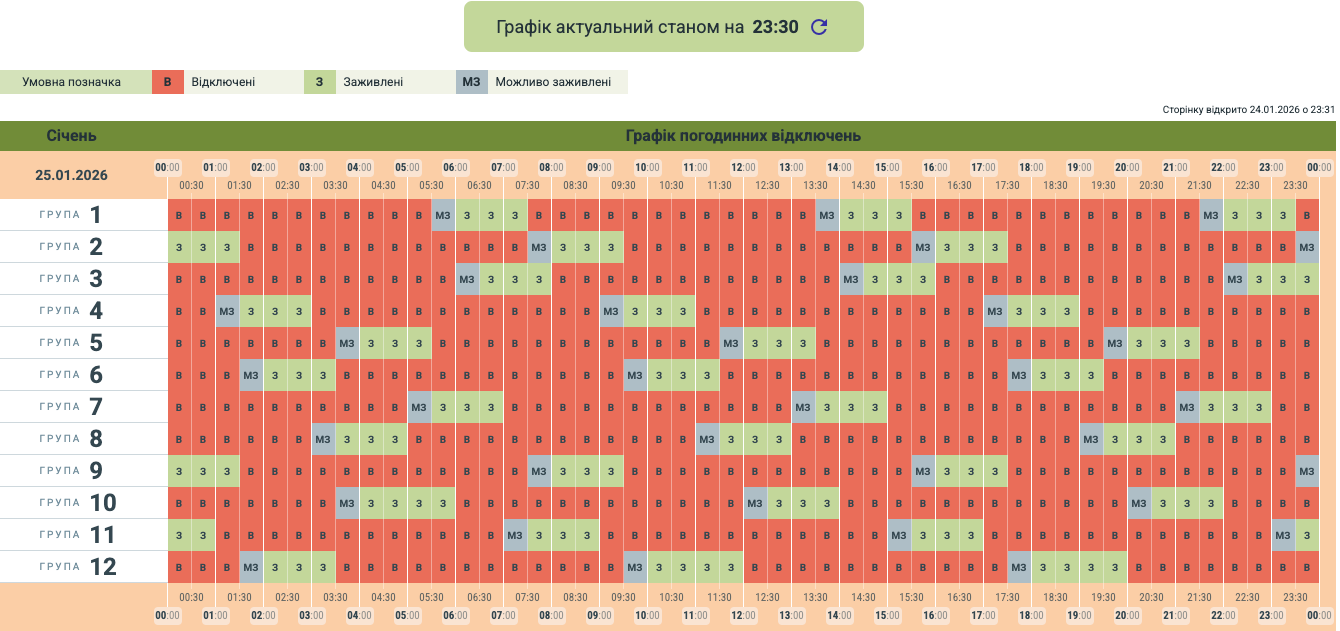 Обленерго оновило графік відключень у Чернівецькій області на сьогодні, 24 січня