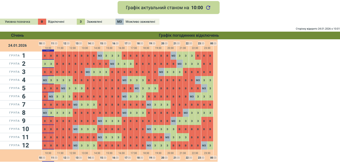 Обленерго оновило графік відключень у Чернівецькій області на сьогодні, 24 січня