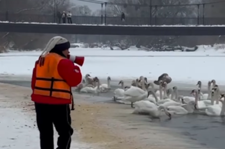 На Львівщині надзвичайники рятували на воді жінку, яка провалилась під кригу та лебедя, який примерз.