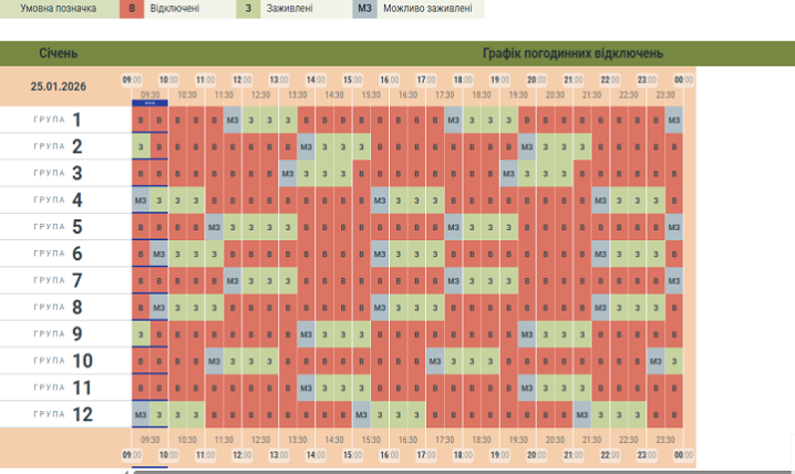 Обленерго оновило графік відключень у Чернівецькій області на сьогодні, 24 січня