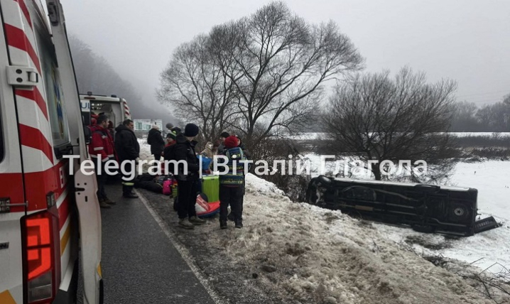На Закарпатті автобус з дітьми вилетів з траси та перекинувся. До лікарні доставити шістьох неповнолітніх та жінку.