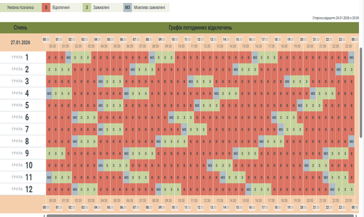 Опублікували графік вимкнень на Буковині завтра, 27 січня.