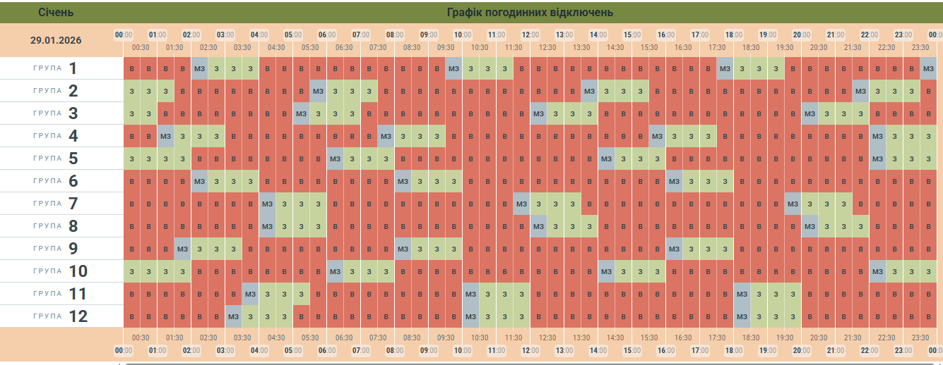 Орієнтовний графік заживлення для груп споживачів • 29.01.2026