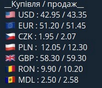 Сьогодні, 29 січня, у чернівецьких обмінниках долар можна здати за 42,95, а купити американську валюту за 43,35. Євро в обмінниках приймають за 51,20, а продають за 51,45.
