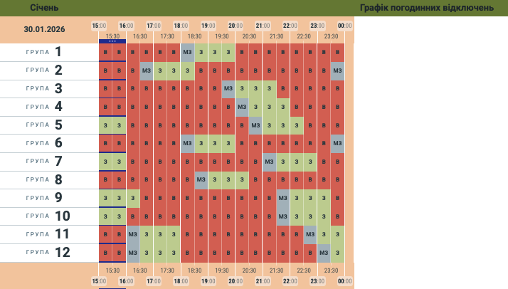 Оновили графік відключень електрики на 30 січня для Чернівецької області.
