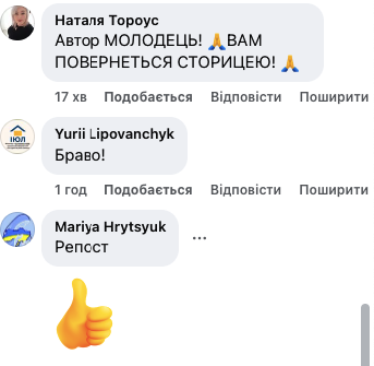 Користувачі у коментарях дякують авторці допису та слова підтримки.