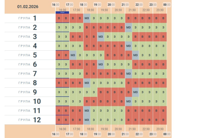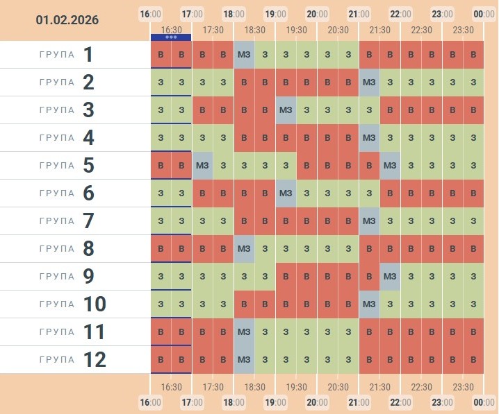 До кінця доби світло вимикатимуть один раз на 3 години