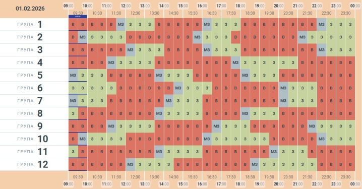 «Чернівціобленерго» опублікувало оновлений графік погодинних відключень світла на неділю, 1 лютого. Світла буде небагато. Його вмикатимуть 2-3 рази, в залежності від групи споживачів. Відключення триватимуть по 3-4 години.