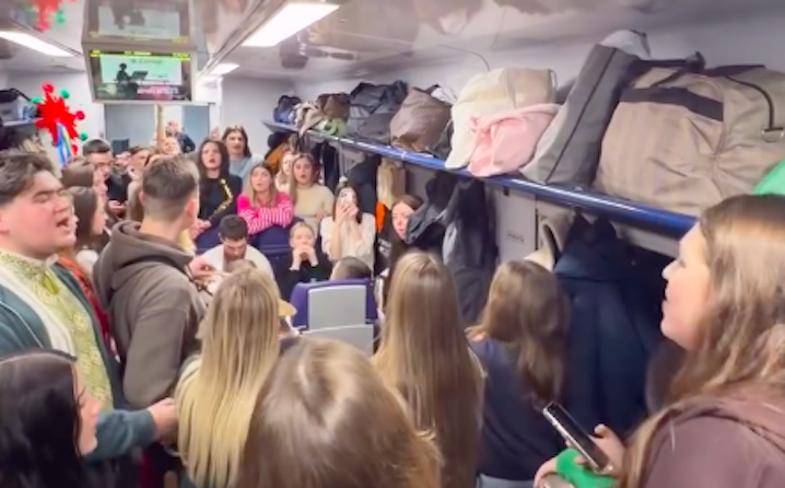 У потягу Львів-Чернівці зафільмували, як молодь виконує щедрівку.