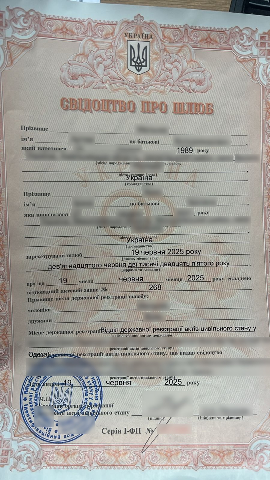 Під час вивчення документів, наданих на прикордонний контроль, прикордонники виявили, що свідоцтво про шлюб пари, який, ніби то, був зареєстрований влітку минулого року, має ознаки підробки. «Документ» надрукований на звичайному папері без мікротексту та інших захисних елементів. Частина даних, що містяться в свідоцтві, надрукована поверх печатки.