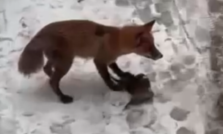 У Чернівцях серед багатоповерхівок зафільмували лисицю, яка вполювала голуба.