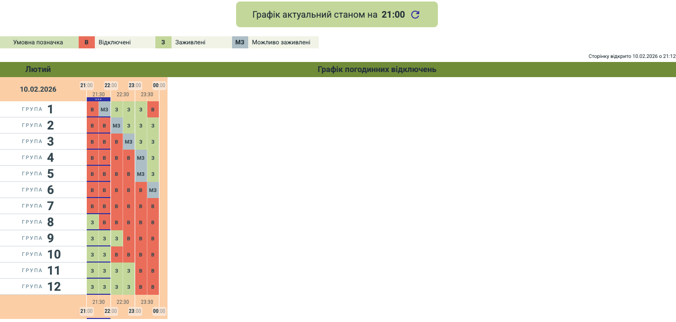 Трохи більше світла: оновлений графік для Чернівців та області на 10 лютого