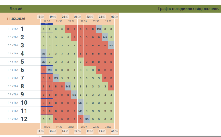 Вчергове оновлений графік вимкнень для Буковини на вечір вечір 11 лютого.