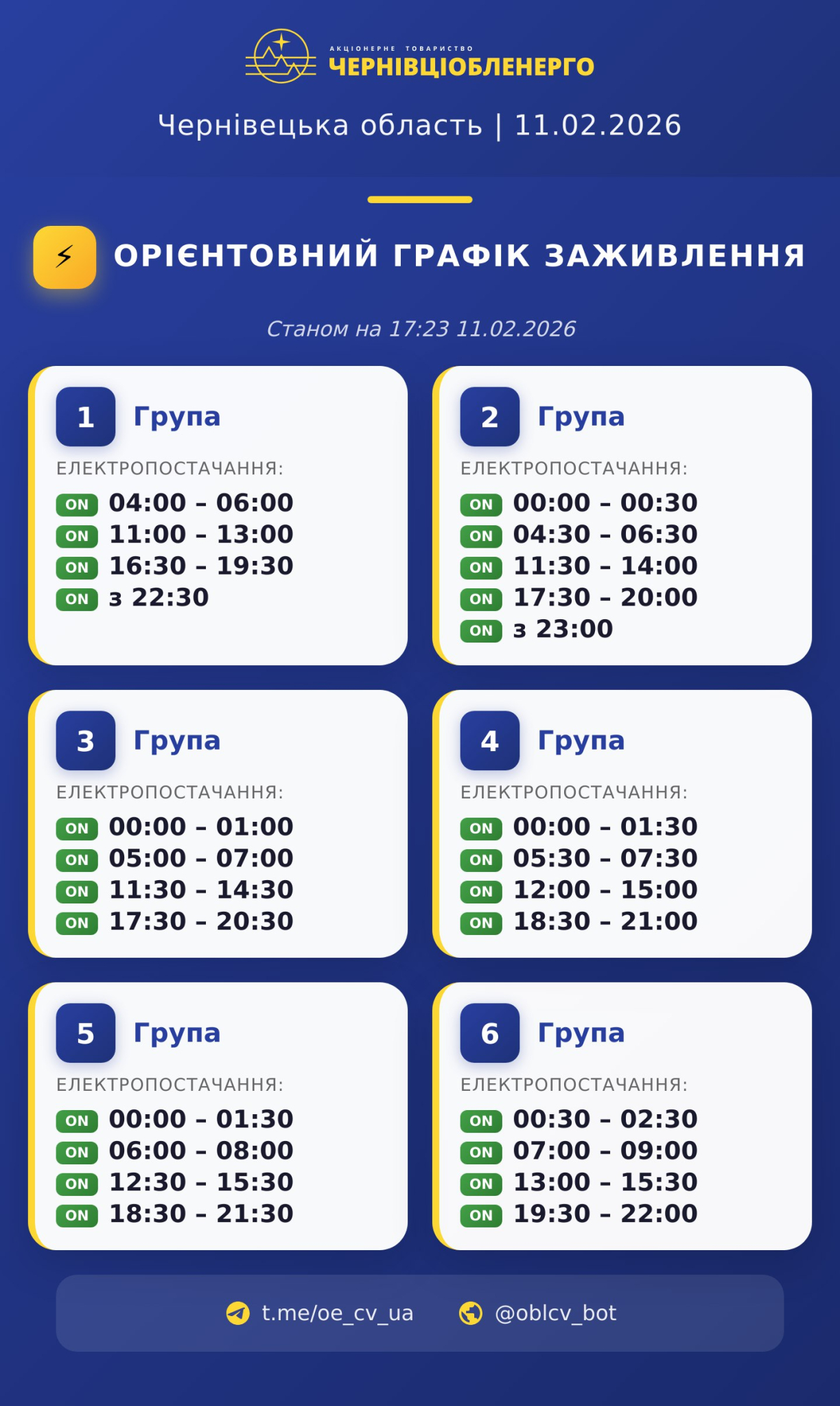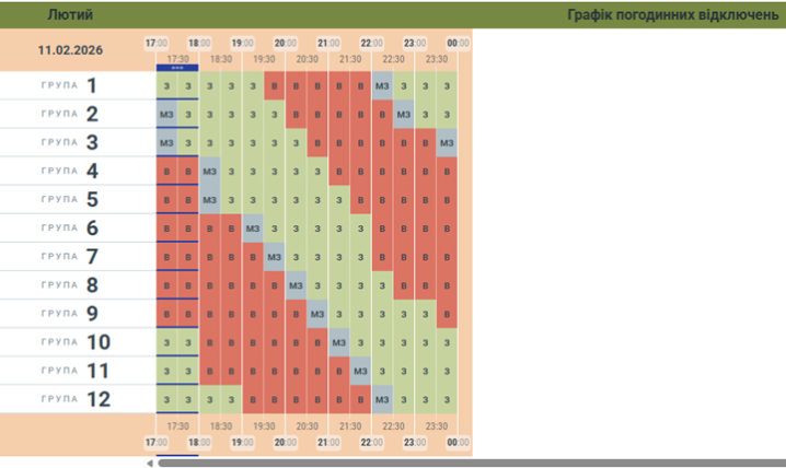 Вчергове оновлений графік вимкнень для Буковини на вечір вечір 11 лютого