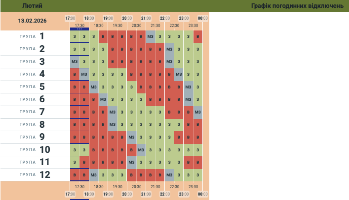 Графік відключення світла на п'ятницю, 13 лютого для жителів Чернівецької області