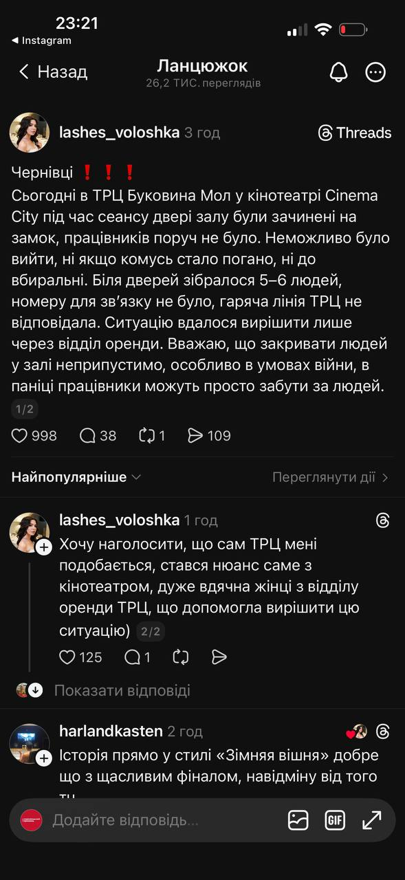 Про це пише чернівчанка Вікторія у мережі Threads.