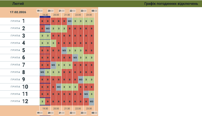 Оновлений графік знеструмлень для Чернівецької області на вівторок, 17 лютого