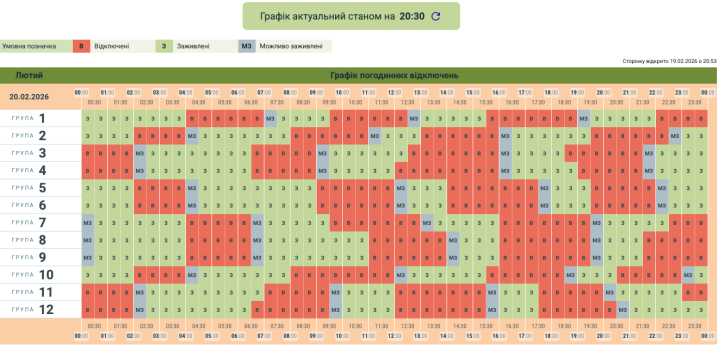 Графік відключень світла на Буковині 20 лютого