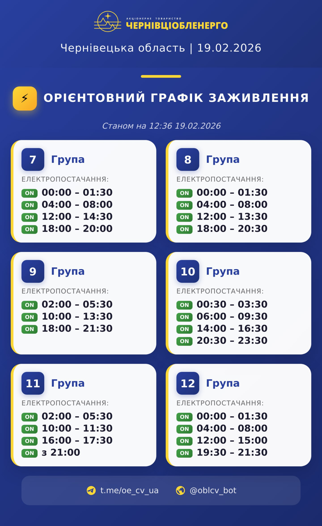Оновили графік вимкнення світла для буковинців на 19 лютого.