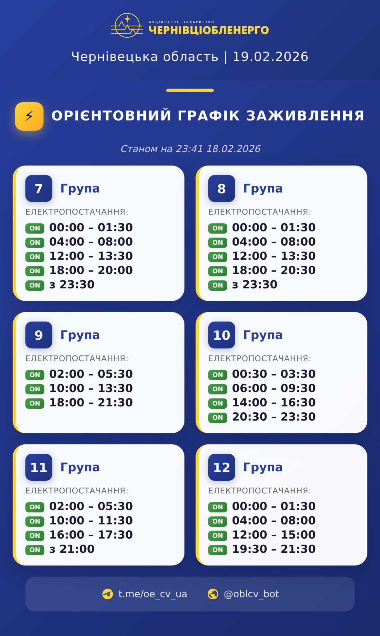 Оновлений графік вимкнень світла для Буковини на вечір 18 лютого