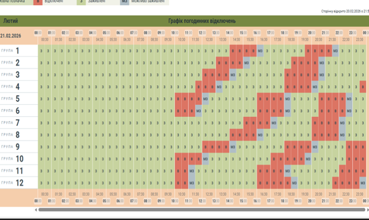 Вчергове оновлений графік вимкнення світла на Буковині 20 лютого