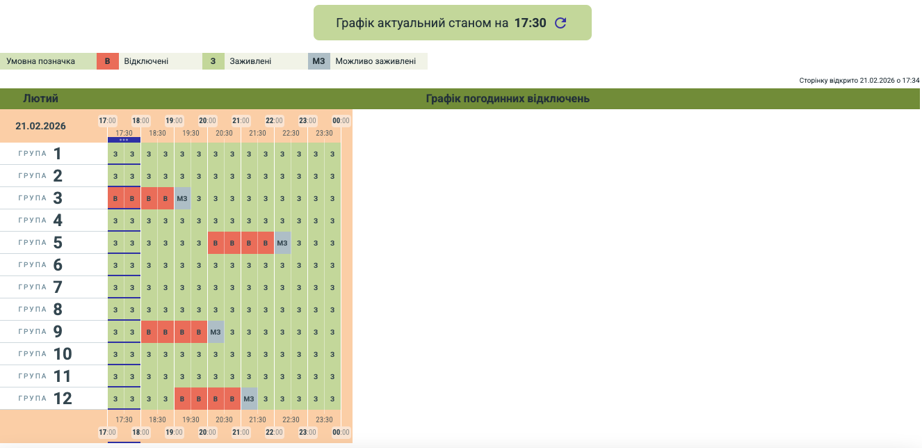 У чотирьох групах споживачів зʼявилися години без електрики.