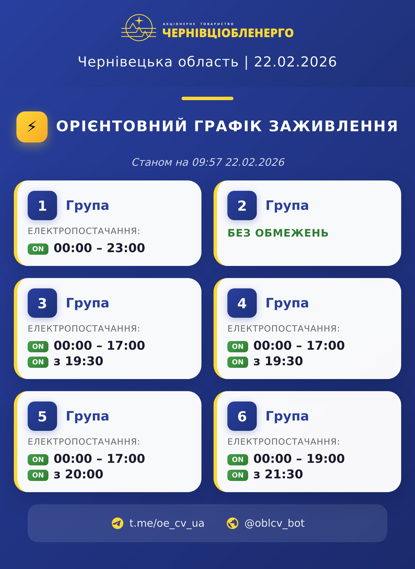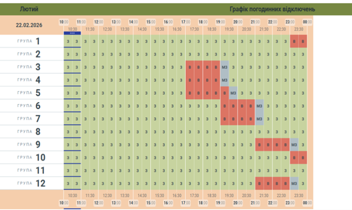 Обленерго знову оновило графік вимкнень світла для Чернівців та області на 22 лютого.