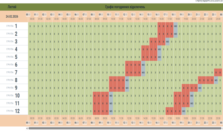 Графік вимкнення для Буковини на 24 лютого.