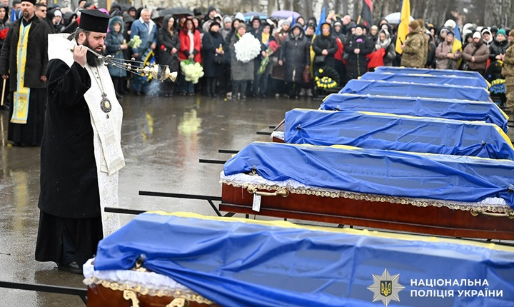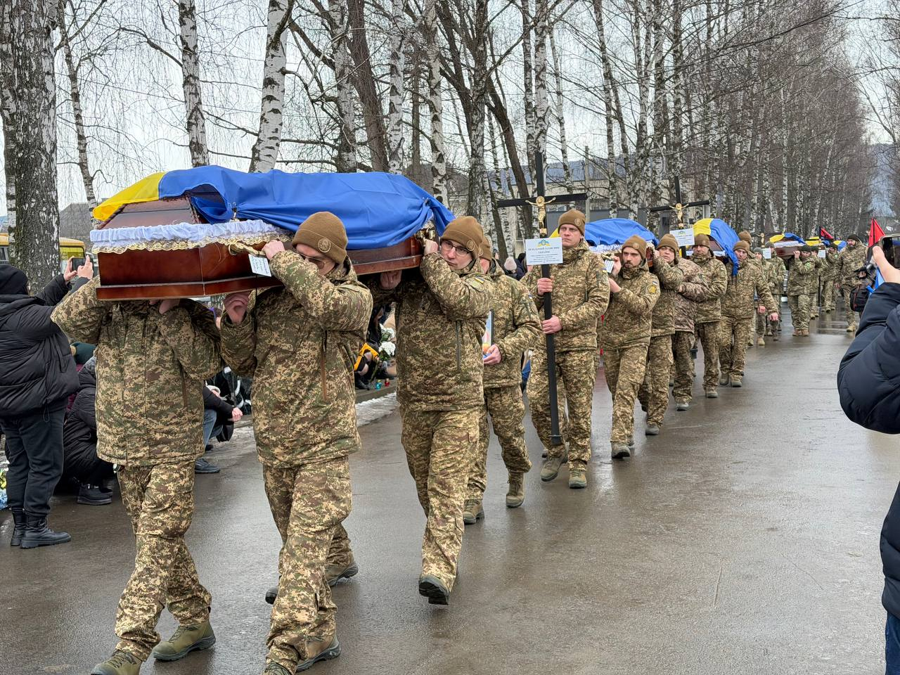 Сьогодні наша громада провела в останню земну дорогу сімох Захисників України.