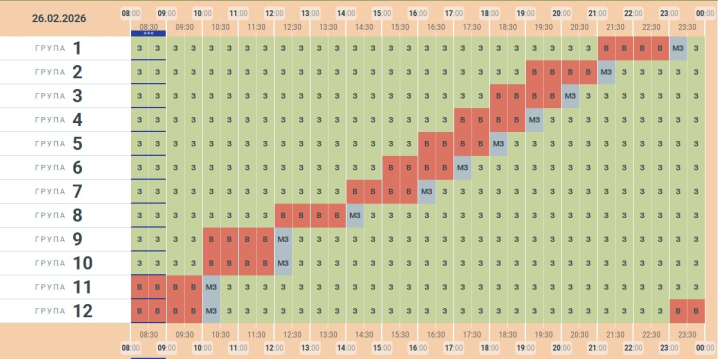 «Чернівціобленерго» опублікувало графік погодинних відключень світла на четвер, 26 лютого. Світло вимикатимуть 1-2 рази на добу, в залежності від групи споживачів. Загалом світла в оселях буковинців не буде від 2 до 3 годин.