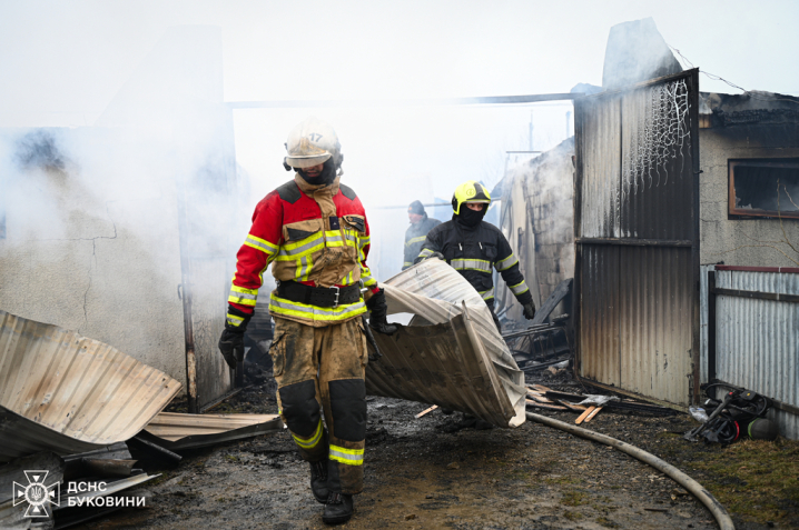 Сьогодні вночі у Чернівцях сталася пожежа в гаражі, зблокованому з котельнею. Рятувальники ліквідували займання на площі 70 кв.м. Вогнем повністю знищено будівлю та господарське майно. Попередня причина пожежі - недолік конструкції твердопаливного котла.