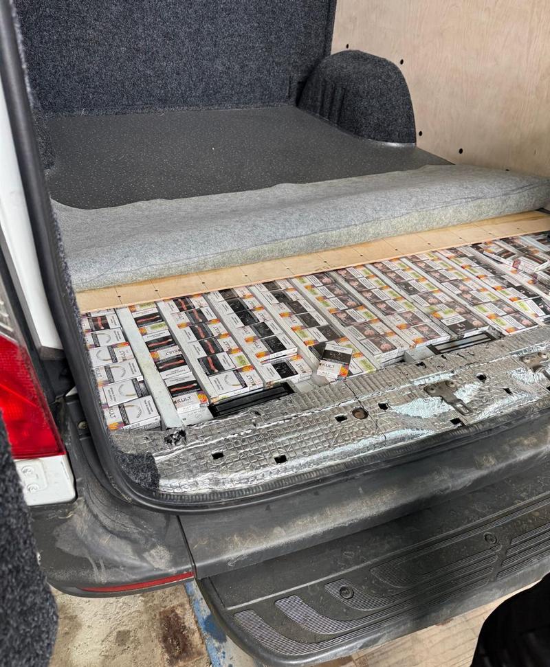 В ході детальної перевірки прикордонники виявили в транспортному засобі подвійну підлогу, де були заховані 4 тисячі пачок сигарет з марками акцизного податку Республіки Молдова.