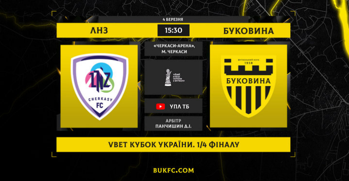РекламаВесняна частина сезону для «Буковини» розпочинається з надважливого випробування. Сьогодні, 4 березня, «жовто-чорні» проведуть свій перший офіційний матч у 2026 році - у чвертьфіналі Кубка України.