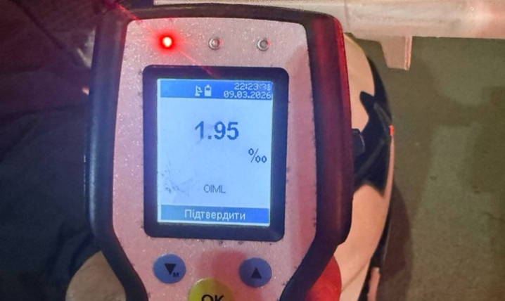 Чоловік пройшов огляд на стан сп'яніння на місці зупинки автомобіля. Результат позитивний — 1,95 проміле.