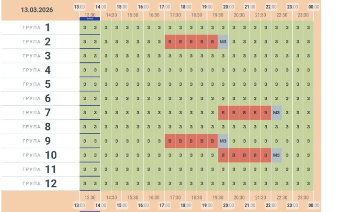 Реклама«Чернівціобленерго» опублікувало графік погодинних відключень світла у четвер, 13 березня. Електрику вимикатимуть лише у чотирьох групах споживачів: 2,7,9 та 10 групи. Знесмтрумлення триватимуть 2,5-3 години.