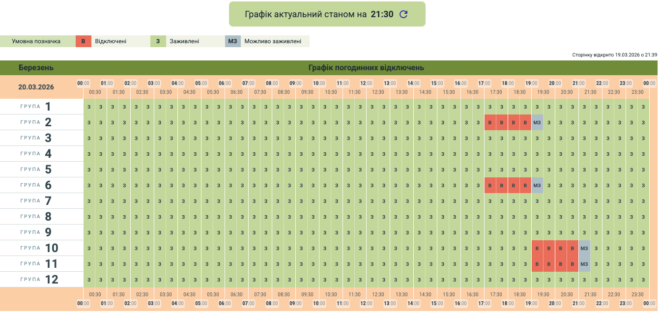 Обленерго опублікувало графік вимкнень світла в Чернівецькій області на 20 березня.