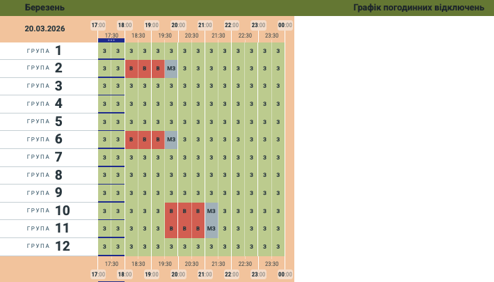 Оновили графік відключень світла на 20 березня для Чернівецької області.