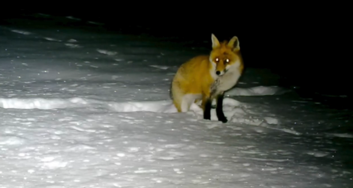 На одному з кадрів, ймовірно, вже зафіксовано результат такого полювання — лисиця несе здобич.