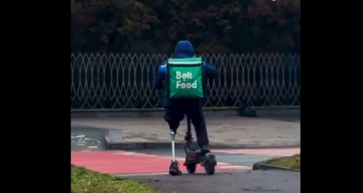 На кадрах, знятих у Львові, видно, як кур’єр на протезі професійно вправляється з електросамокатом. Попри складні погодні умови та фізичні виклики, він щодня доставляє замовлення, демонструючи неймовірну витримку та жагу до життя.